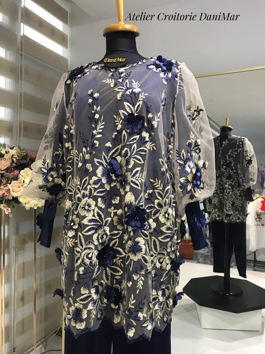 Costum 3 piese: pantalon si bluza din tafta si bluza dantela 3D
