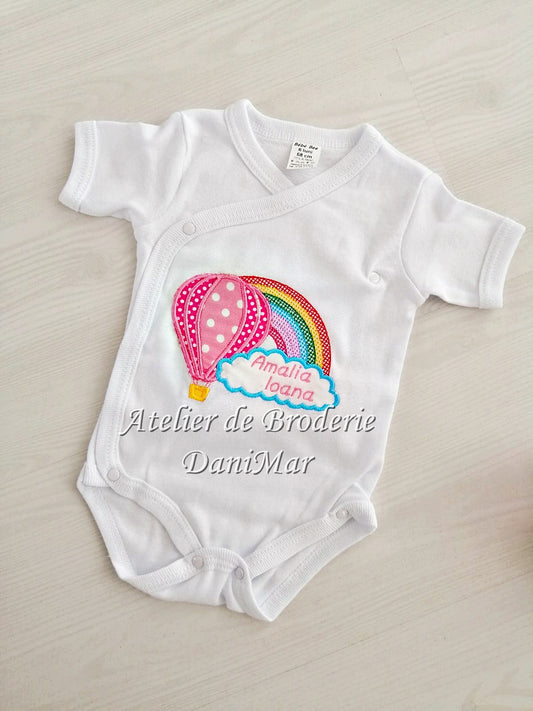 Body aniversar personalizat prin broderie - Fetita cu flori