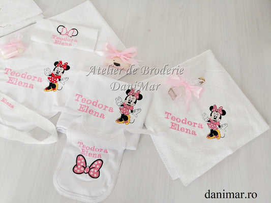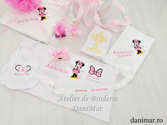 Set tricouri aniversare 1 an personalizate prin broderie - Minnie Mouse